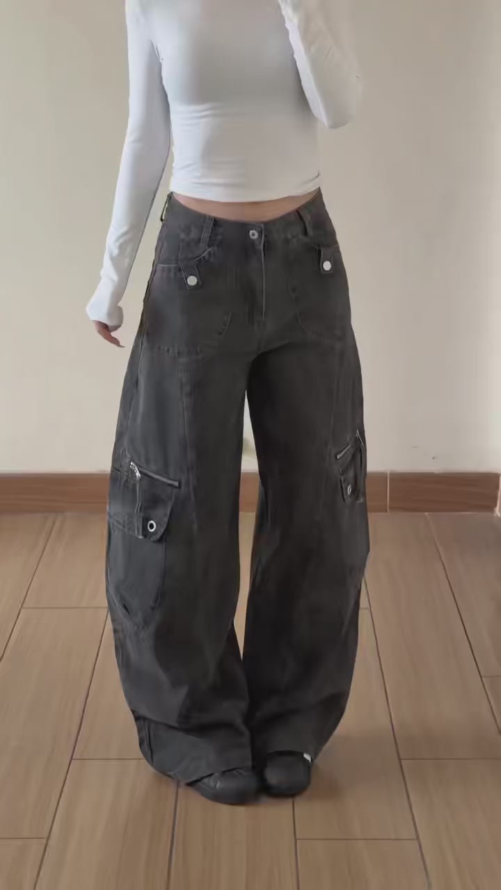 Pair with oversized graphic tees, chunky sneakers, and a utility jacket for the ultimate Y2K streetwear look, or dress them up with a cropped top and boots for an edgy, feminine vibe.