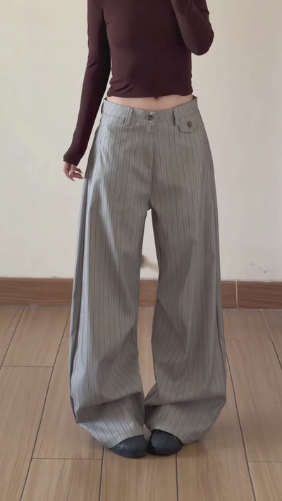 Striped Baggy Wide-Leg Suit Pants